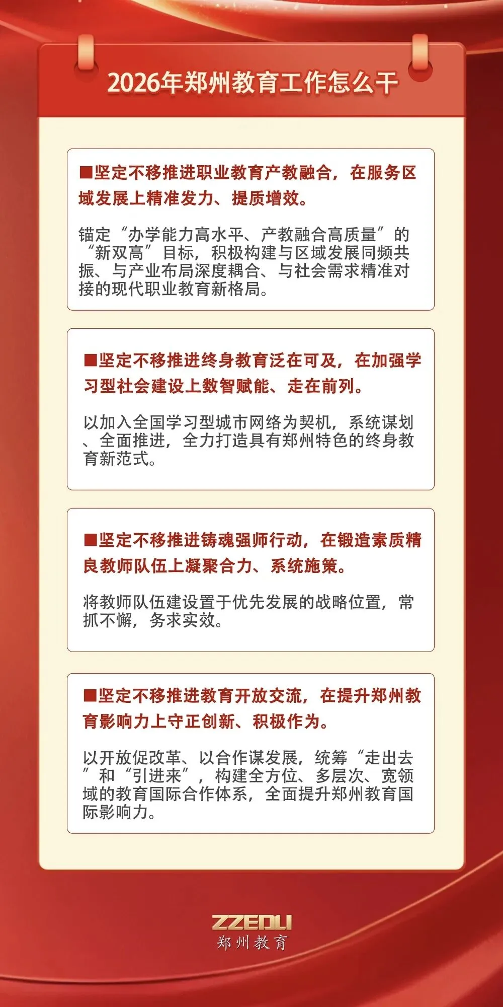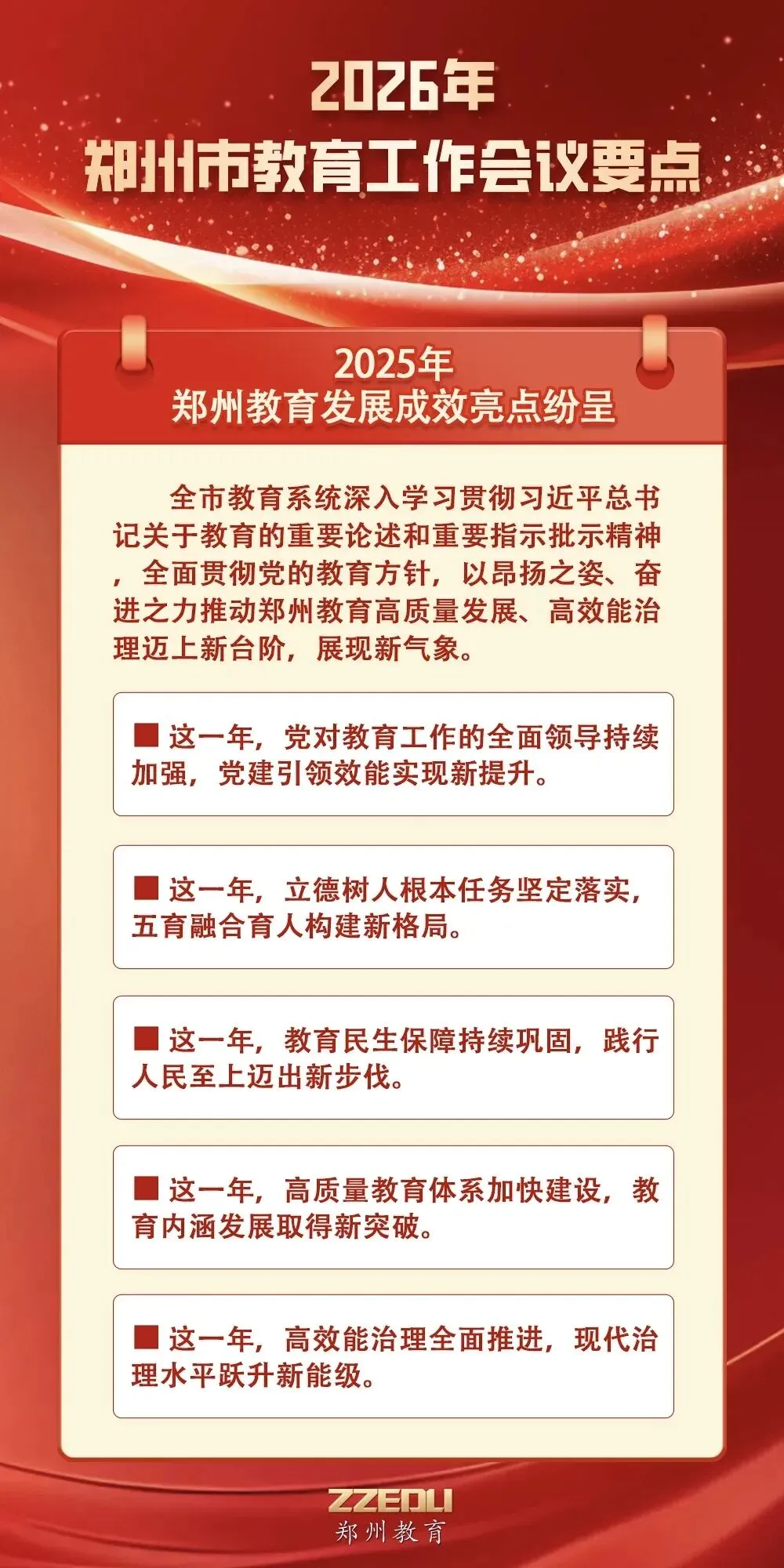 1月28日,2026年全市教育工作会议召开。会议强调了哪些内容?2026年郑州教育工作怎么干?组图为你划重点。