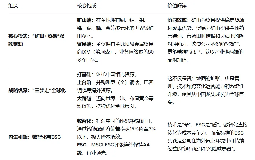 它通过 “矿山+贸易” 的模式,将自己从价格被动的承受者,部分转变为价格主动的管理者和行情敏锐的洞察者。它通过 “多矿种、全球化” 的布局(如今正式确立“铜金并行”战略),分散了风险,并抓住了最具时代感的需求主线。它更通过 “数智化+高标准ESG” ,将传统矿业改造为现代产业。