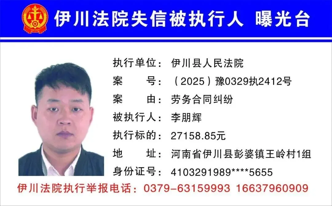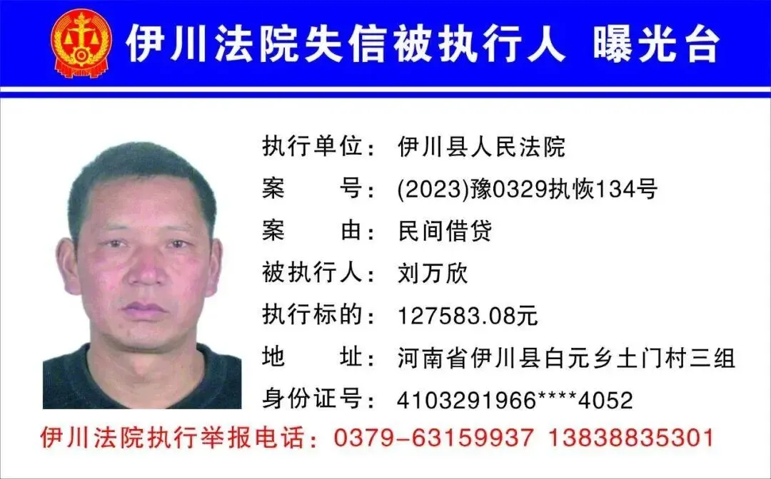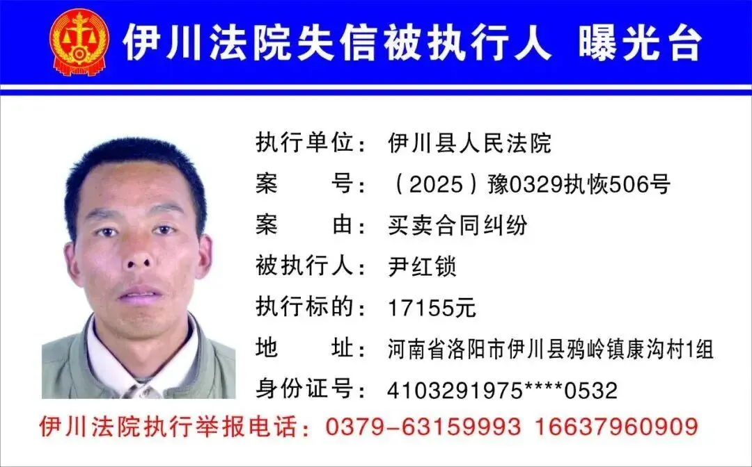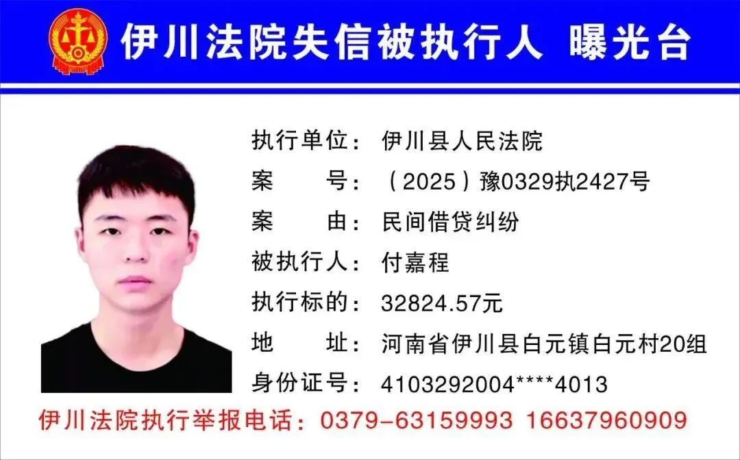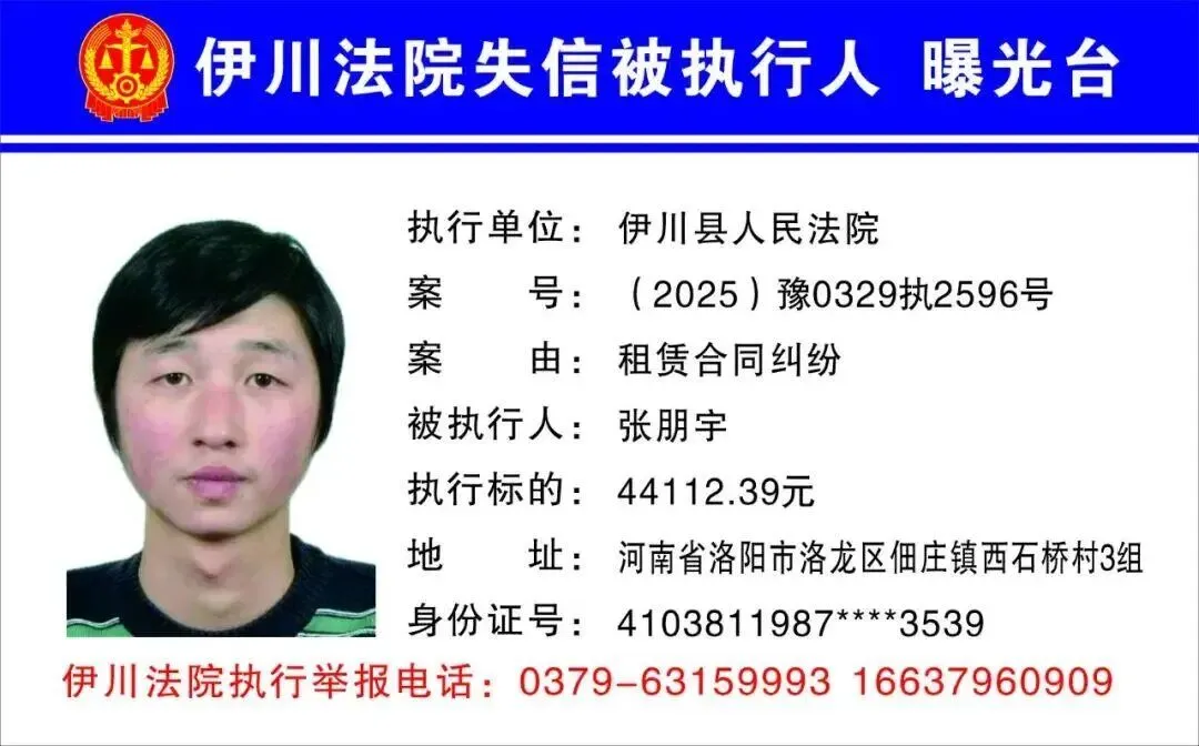 伊川法院曝光最新一批失信被执行人名单!