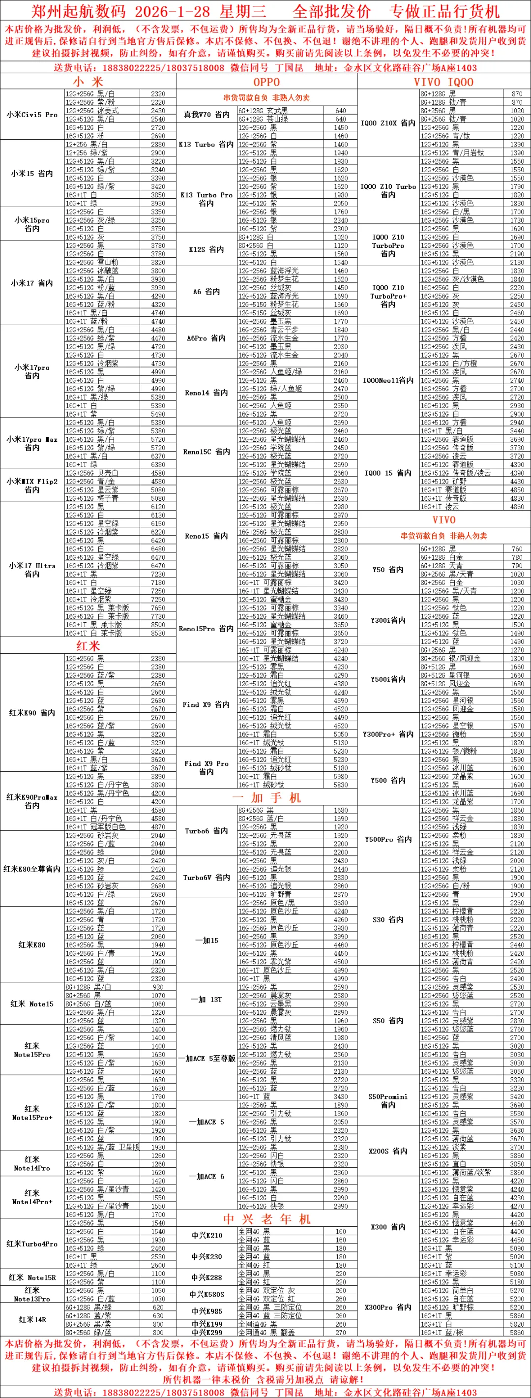 每天手机最新行情 请关注微信每日推送微信公众号:郑州起航数码公司地址:郑州市金水区文化路82号硅谷广场A座1403