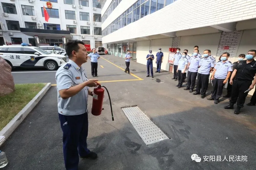 为进一步加强干警的消防安全意识,提高预防和处置火灾的能力,8月12日下午,安阳县人民法院邀请安阳县消防大队参谋夏浩等人,为该院全体法警队员、机关及法庭安保人员进行消防培训及灭火演练。