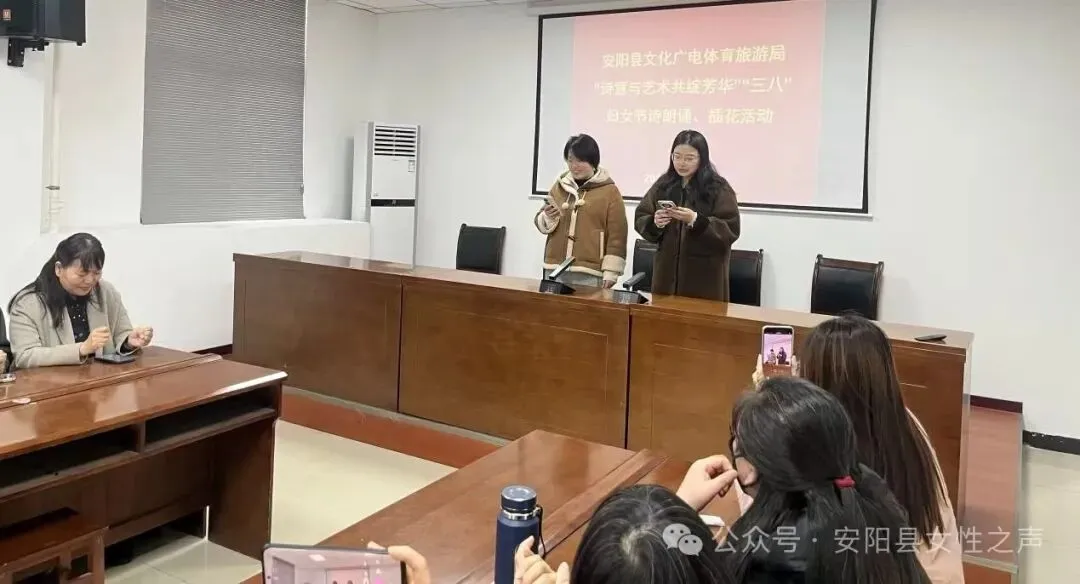 安阳县文广体旅局在局一楼大会议室成功举办了一场别开生面的诗朗诵与插花活动。全局女职工踊跃参与,在温馨欢乐的氛围中度过了一个意义非凡的节日。