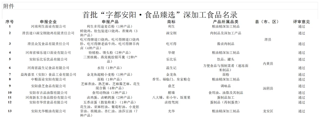 安阳:首批“字都安阳·食品臻选”深加工食品名单公示