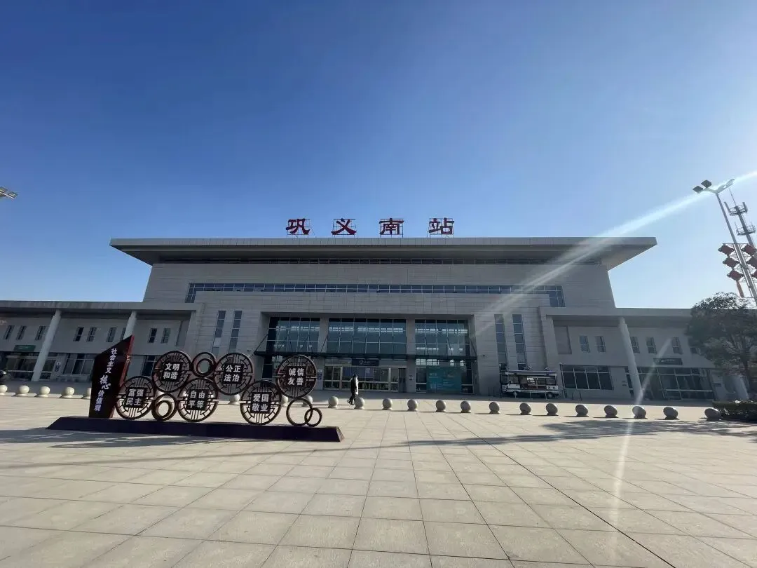 巩义南站下车更近,打车二十来分钟到庄园,别坐错到普速小站,班次少,等起来着急。
