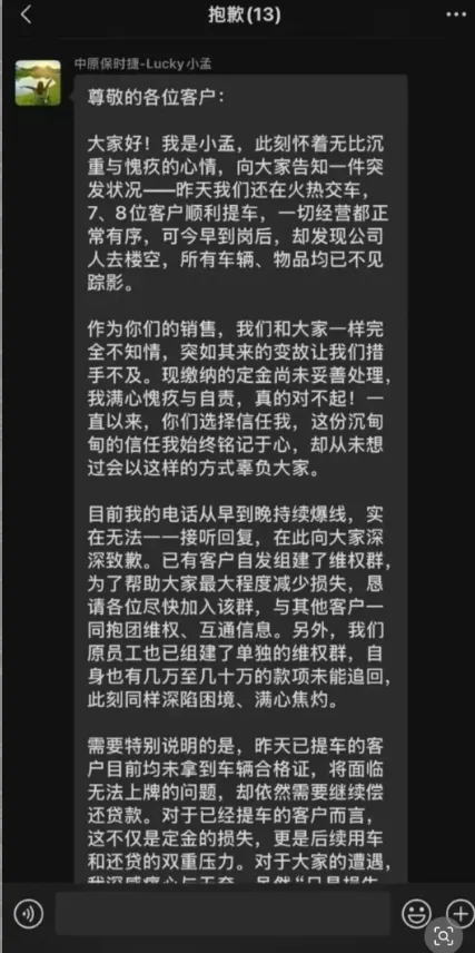 近日,郑州中原保时捷中心一夜之间“人去楼空”,“连夜跑路”,留下数十名员工和上百位客户的愤怒与困惑。豪车展厅灯火辉煌的灯光骤然熄灭,奢华空间只剩下沉默的汽车和空荡的工位。