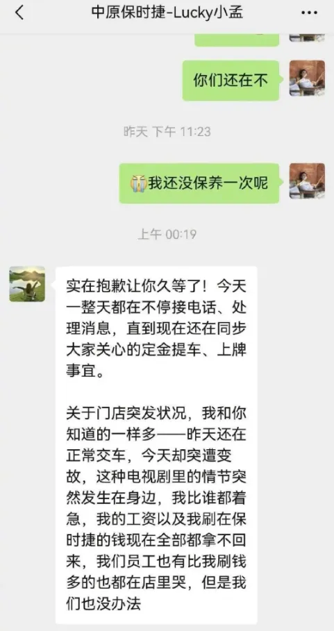 “上周还在这里做保养,这周来发现大门紧锁,电话全空。”一位保时捷车主在社交媒体上愤慨地写道。