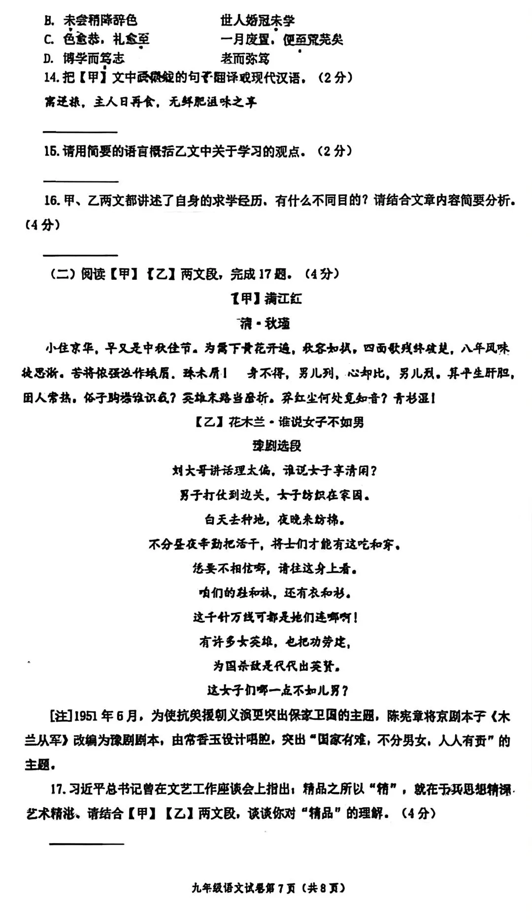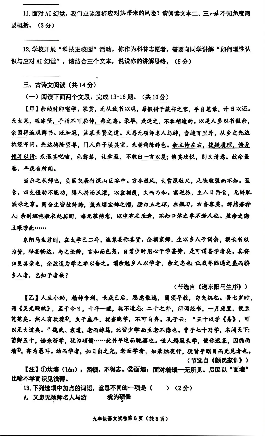 郑州市2025-2026学年上学期九年级期末联考语文试题