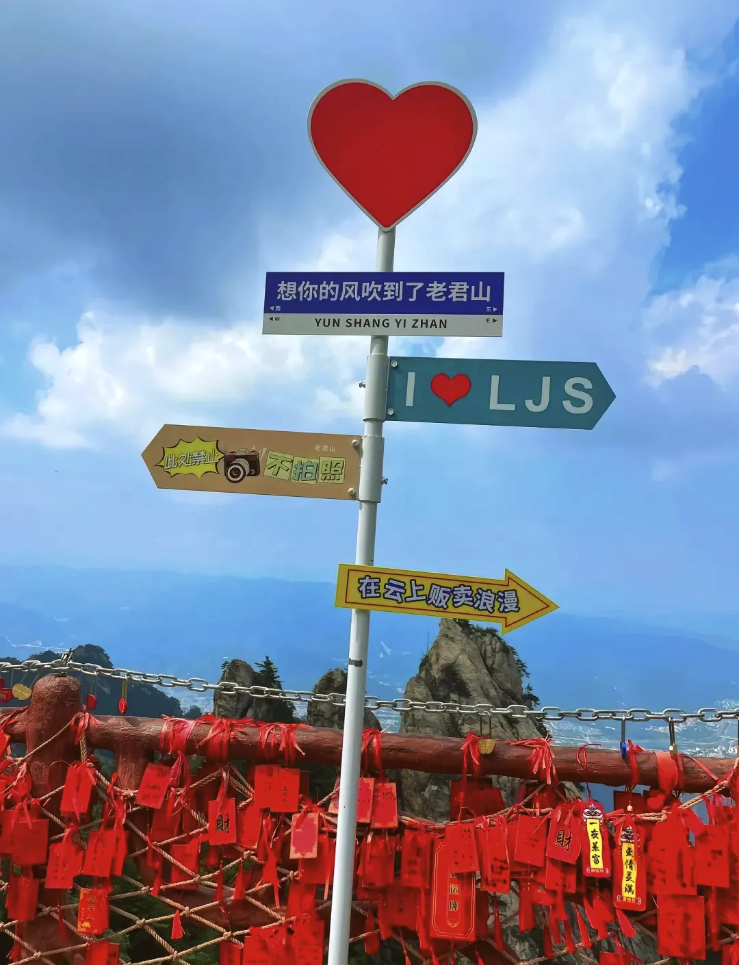 很多神话传说中都有南天门的出现,在道教,更是把南天门作为人界通往天界的大门,老君山的南天门是自然形成的,双峰对峙,中间形成一处自然天阙,它的坐标指着正南正北,与子午线平行。登上66级台阶,通过南天门,就来到了天界五宫的核心建筑老君庙。