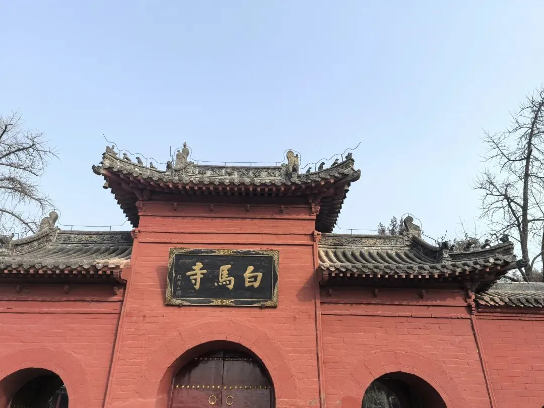 白马寺高大的寺院山门属明代重建的牌坊式建筑,门楣上悬挂着赵朴初先生题写的“白马寺”匾额,笔力遒劲,尽显古寺气度。山门东侧立有元代《洛京白马寺祖庭记》碑,碑文中隐约可见的“祖庭”“释源”四字,字字千钧,印证着白马寺作为中国佛教发源地的崇高地位。