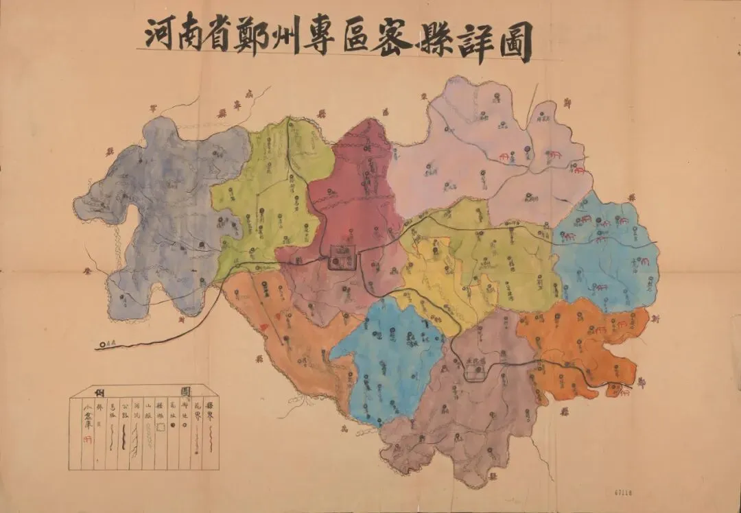 图中用多种不同颜色区分出不同的行政区划。根据图中信息,当时密县分为11个区,各区设有区公所,区下设若干乡。这11个区分别为: