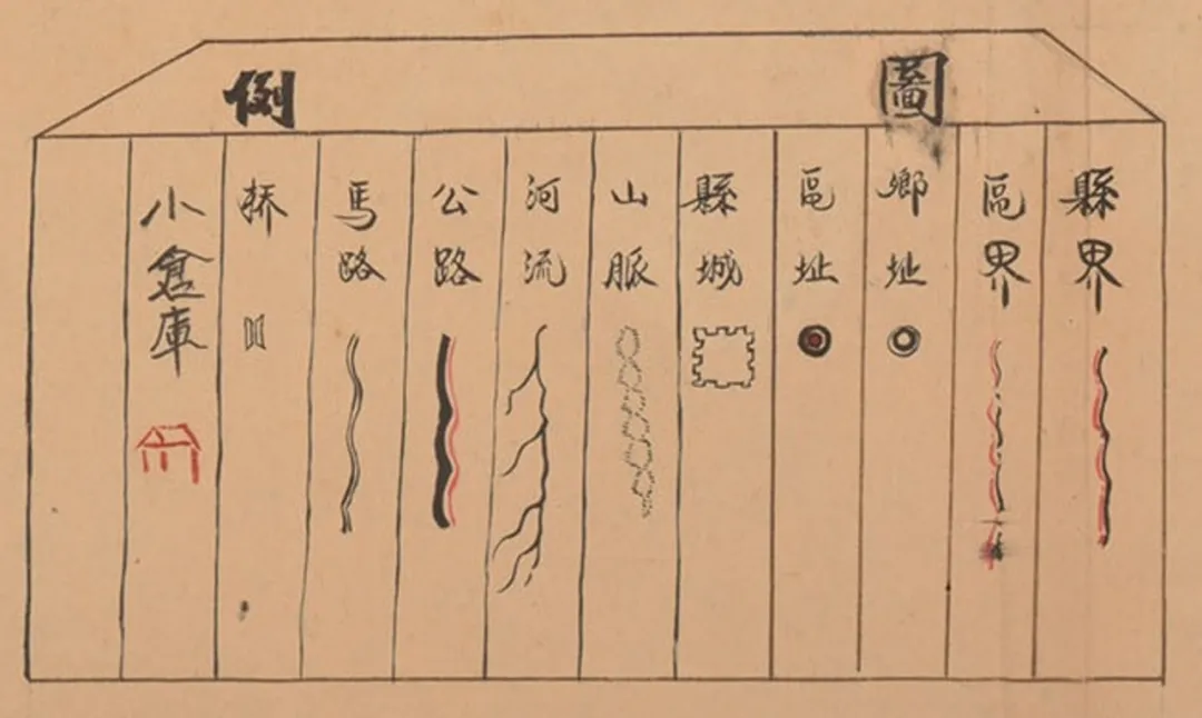 图中图例共有11种,分别是县界、区界、县城、区址、乡址、山脉、河流、公路、马路、桥梁和小仓库。