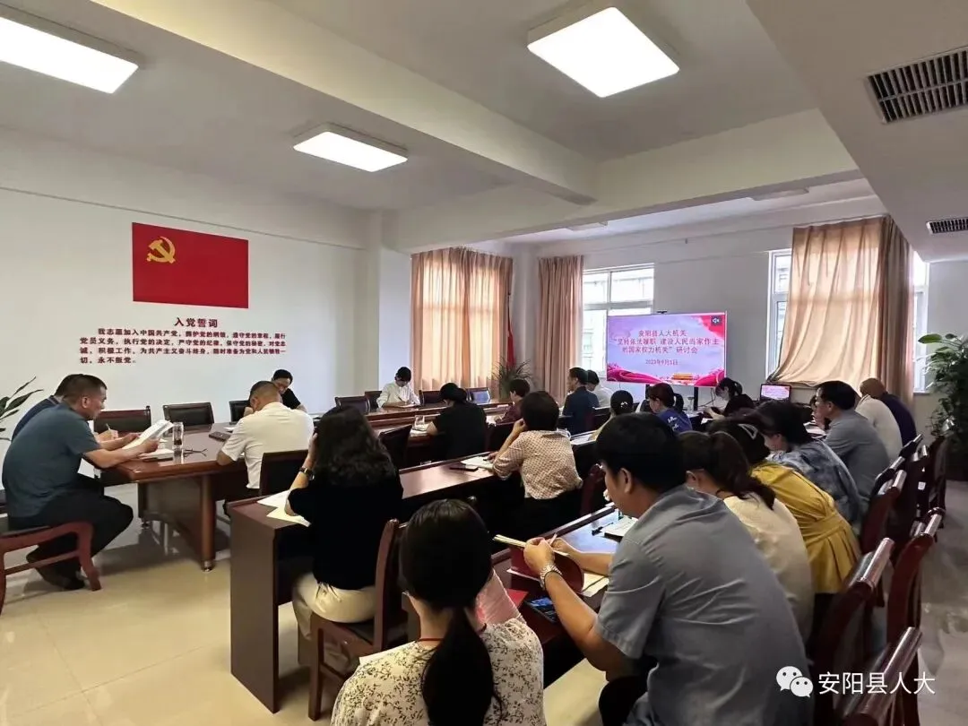 9月5日下午,安阳县人大常委会机关开展“坚持依法履职 建设人民当家作主的国家权力机关”专题研讨会,全体机关党员干部参加。
