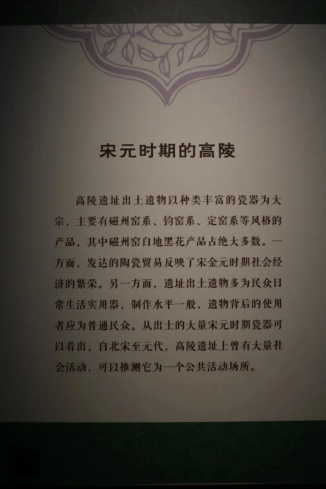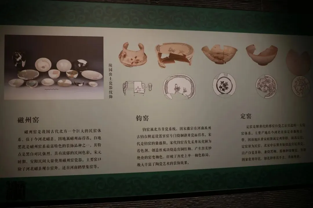 在曹操高陵遗址博物馆,还有最后一个名为“高陵唱晚~高陵陵园废弃之后的岁月见证”的展厅,第二部分为宋金元时期的高陵。这部分除了少量宋金元建筑构件之外,主要是瓷器残件,以本地磁州窑系瓷器为主。文博交流、商务合作请添加本人微信,参与更多线下探馆、访古、交流活动,全网同名“齐云雅集”,具体事宜可以扫上方二维码加我微信咨询,也欢迎推荐给需要的朋友,谢谢关注和转发。