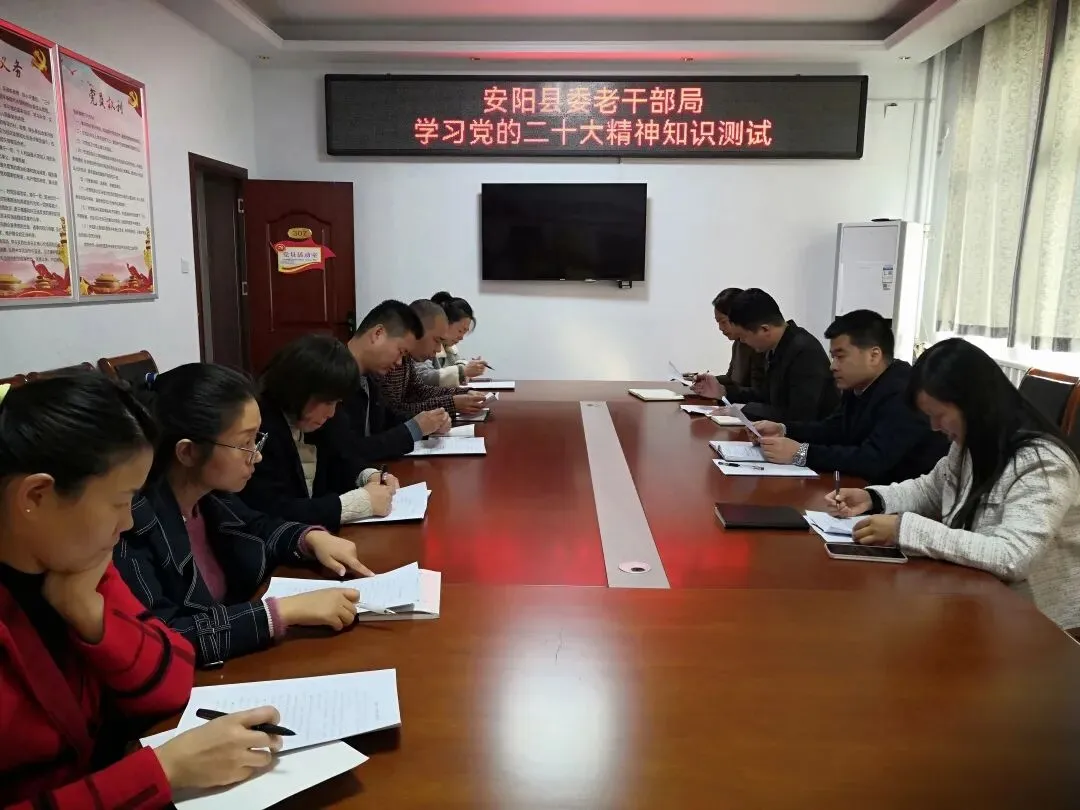 党的二十大召开后,县委老干部局精心组织安排,迅速掀起学习热潮,开展了形式多样的学习活动。为进一步检验学习成果,对党的二十大精神做到学深悟透、入脑入心,10月21日上午,县委老干部局在三楼会议室开展党的二十大精神知识测试活动,全体党员干部参加了测试。