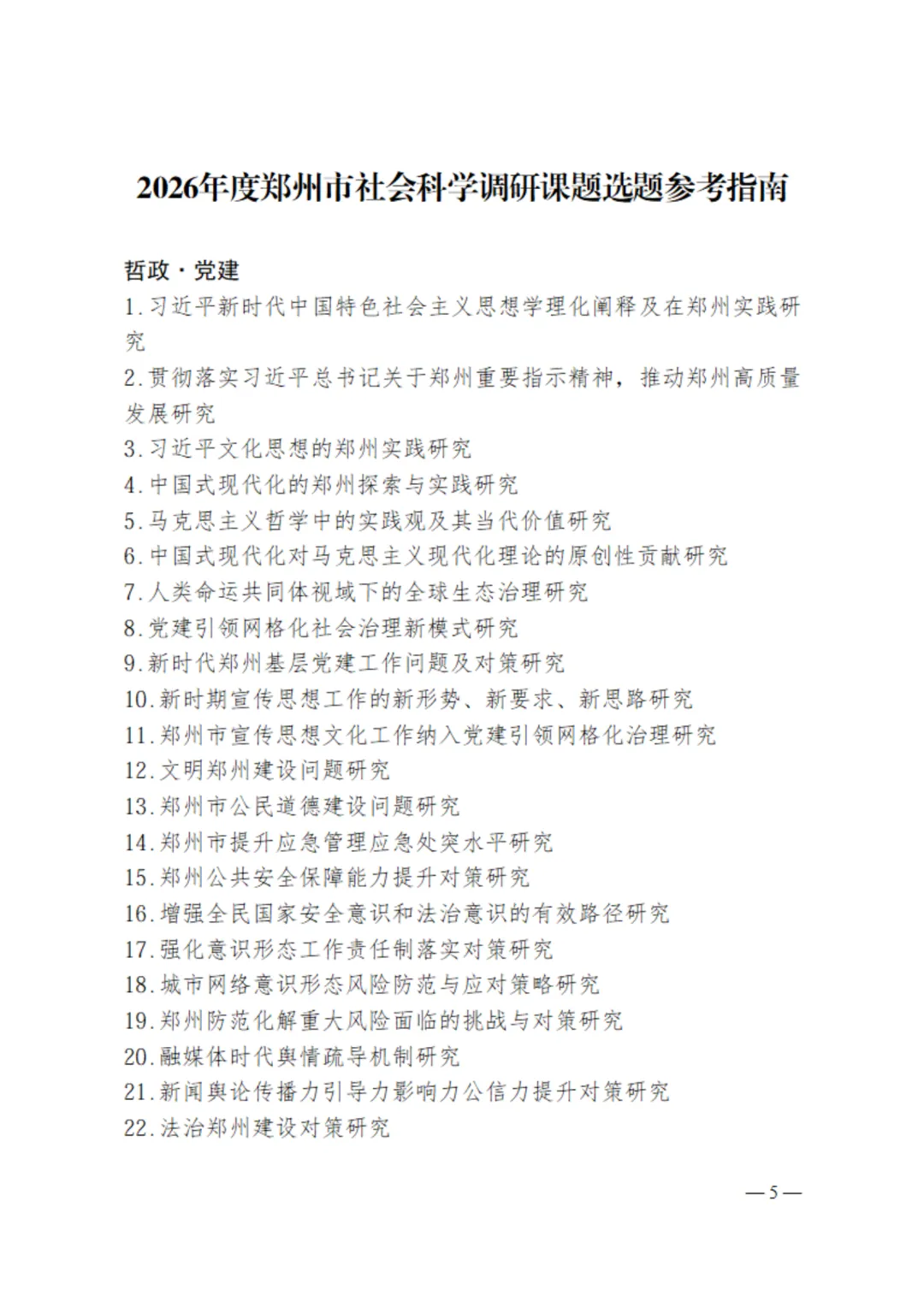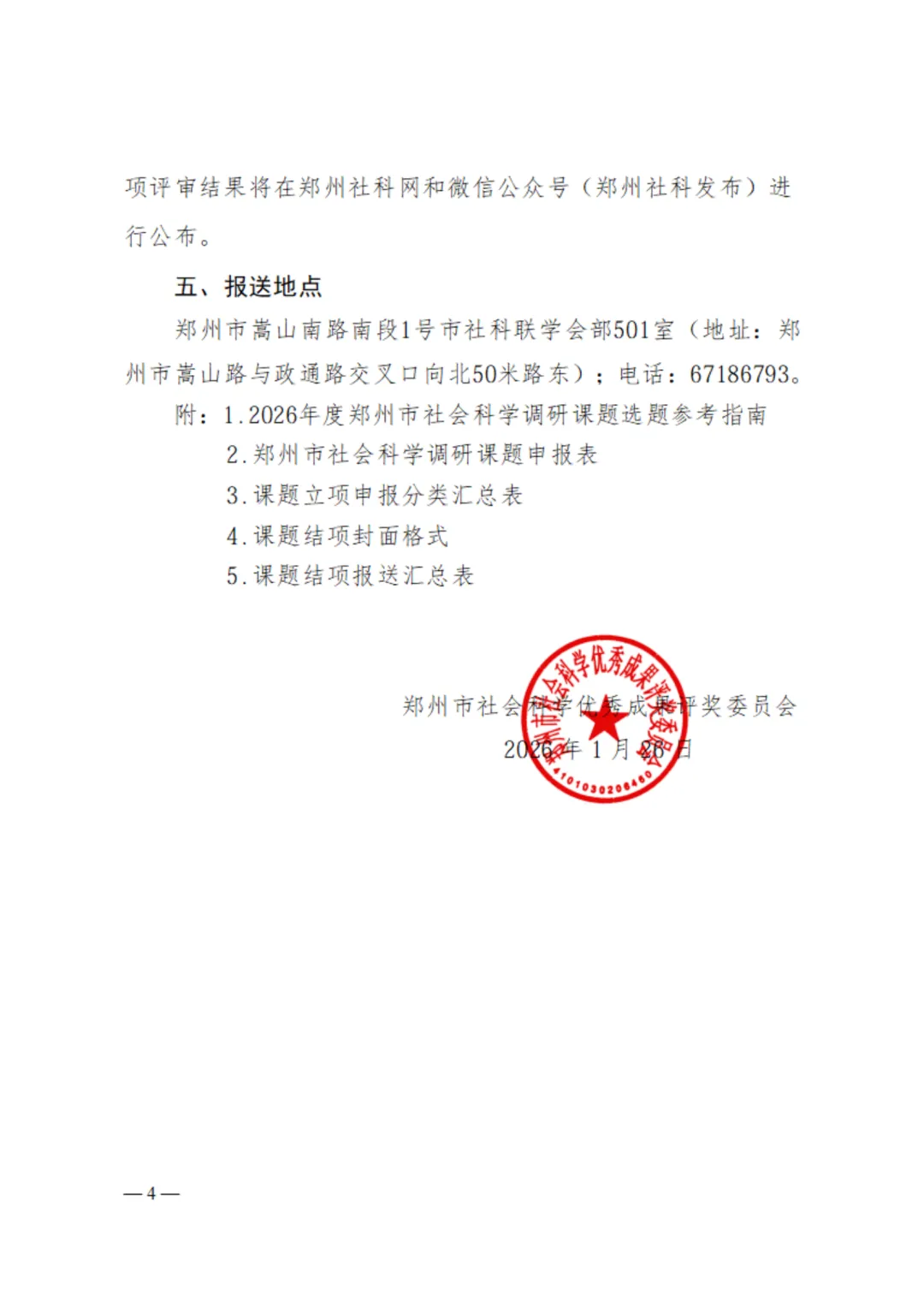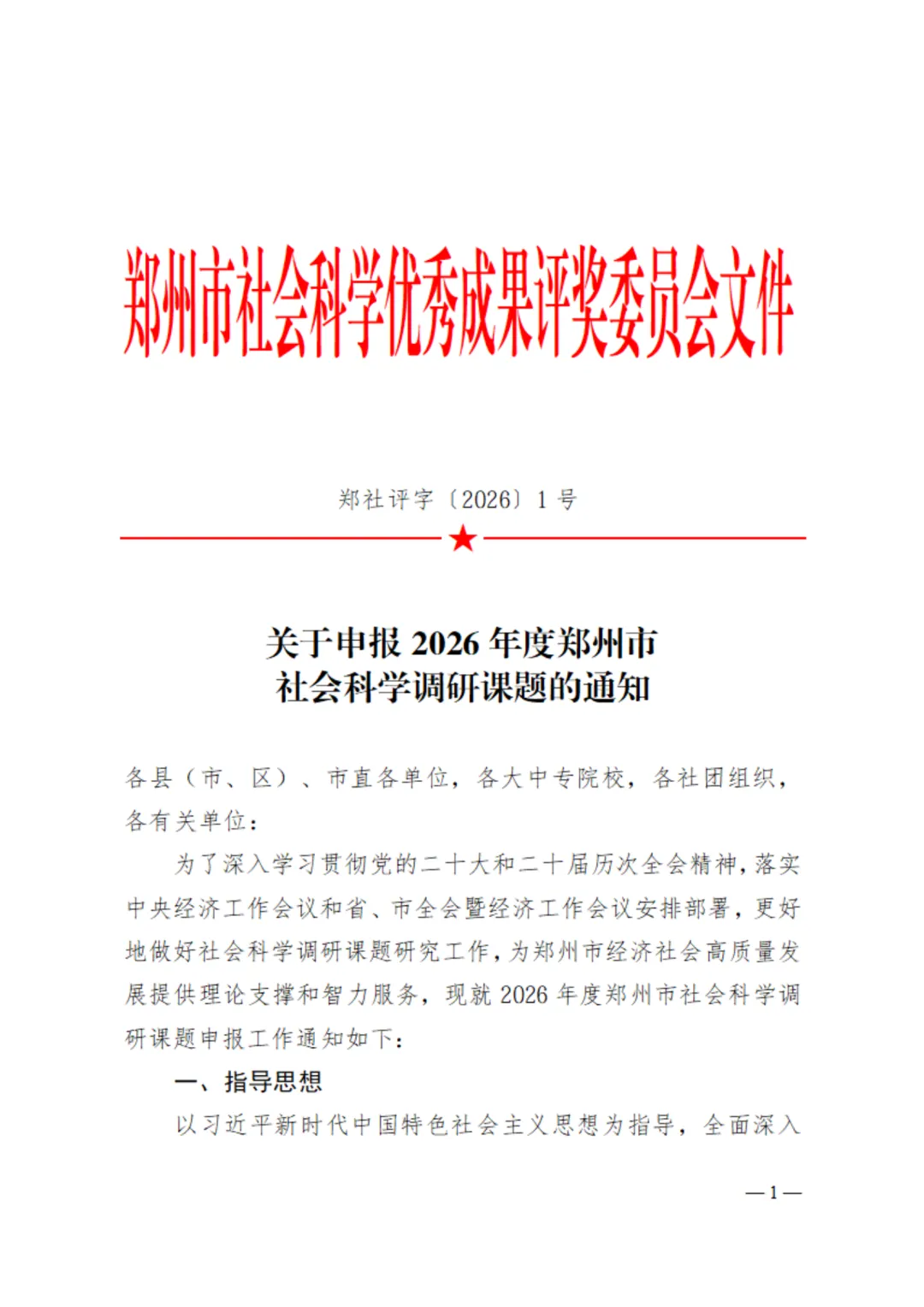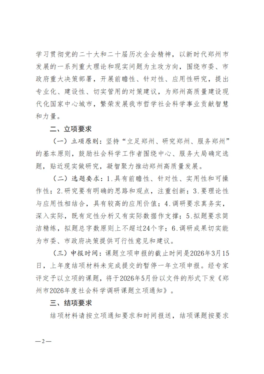 为了深入学习贯彻党的二十大和二十届历次全会精神,落实中央经济工作会议和省、市全会暨经济工作会议安排部署,更好地做好社会科学调研课题研究工作,为郑州市经济社会高质量发展提供理论支撑和智力服务,现就2026年度郑州市社会科学调研课题申报工作通知如下: