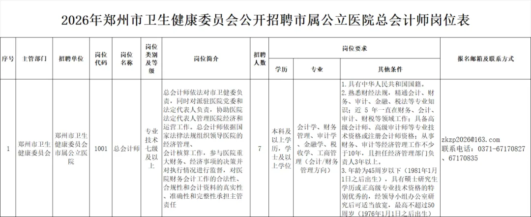 本次公开招聘市属公立医院总会计师7名,聘用后由市卫生健康委员会(以下简称“市卫健委”)统一委派至市属公立医院任职。