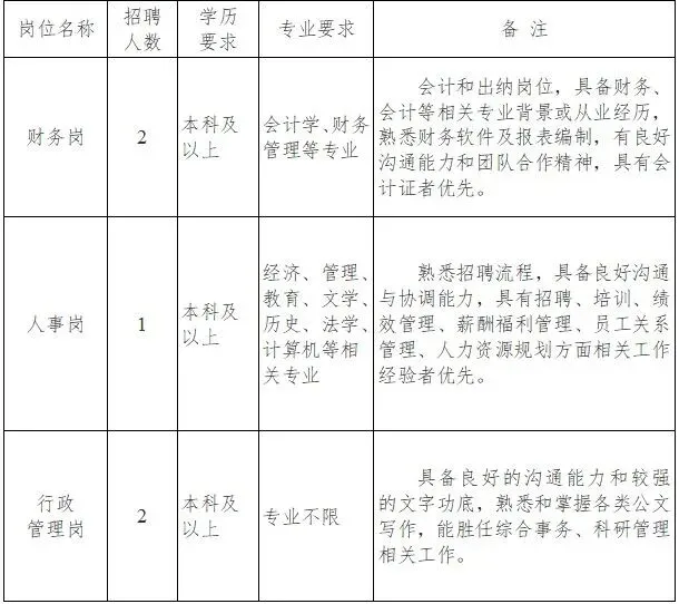 ⭕招聘岗位计划及任职要求