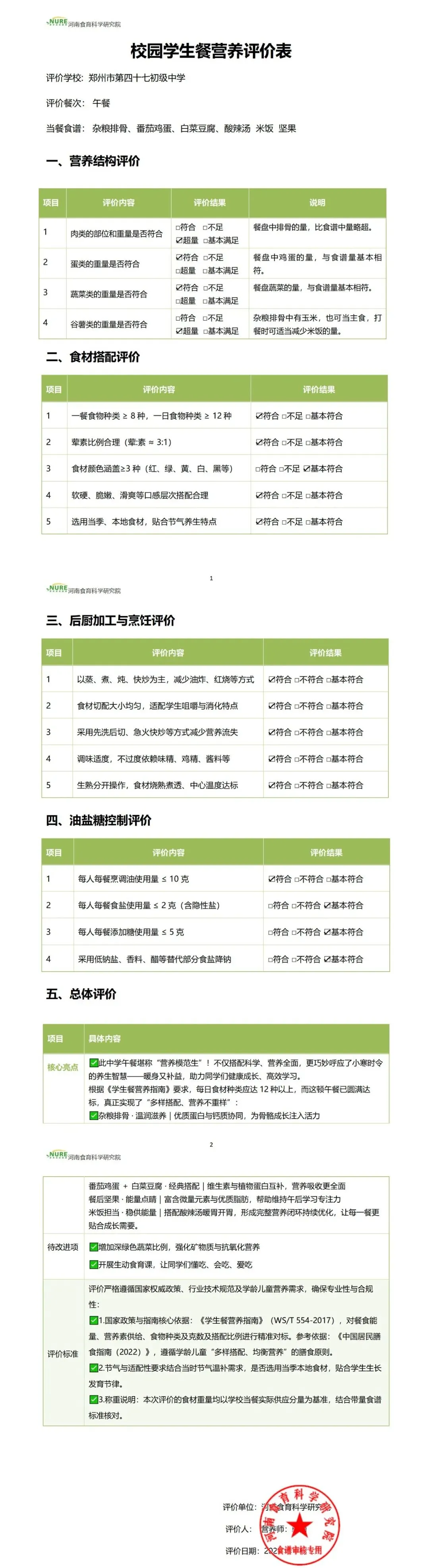 河南食育科学研究院营养师团队,在本次评价中秉持“客观公正、查漏补缺”的原则,既全面肯定了学校餐食的突出优势,也给出了专业的优化方向。