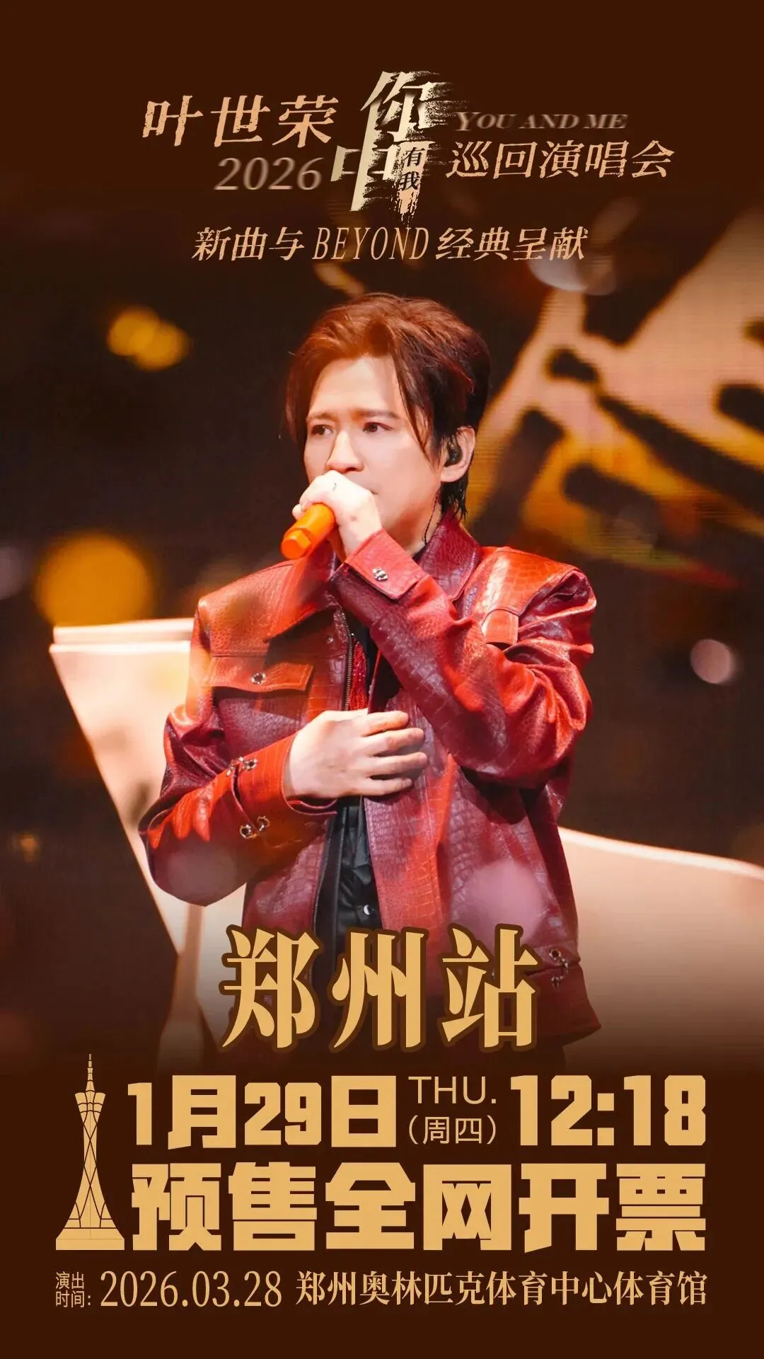 2026年,叶世荣携「你中有我」巡回演唱会热血开唱。此次巡演接连引爆多城,场场爆满、万人大合唱盛况不断,口碑持续刷屏。值此Beyond成立43周年之际,叶世荣以全开麦热力舞台、经典与新作交织呈现,带领跨世代乐迷高燃合唱,用音乐接续Beyond的热血信仰与大爱精神——每一站,都是值得奔赴的青春摇滚庆典。