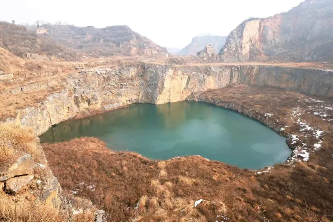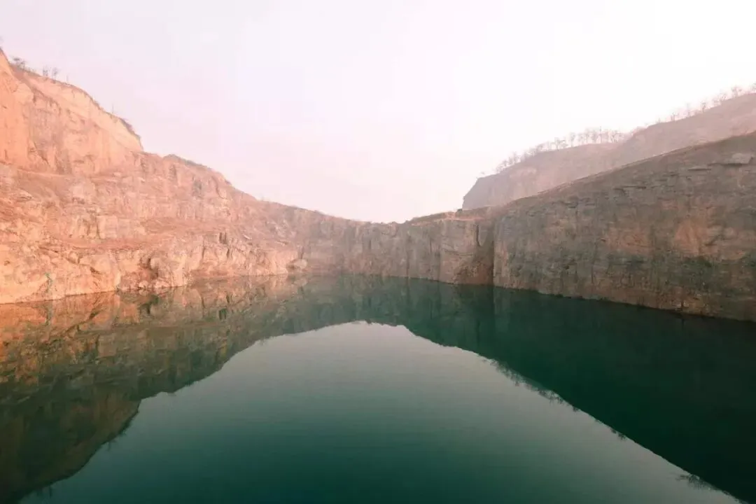 该景点位于新密市白寨镇张楼沟村中桥,这里曾是废弃矿坑,经暴雨填满后意外形成湖泊,以“地上绿宝石”闻名,湖水因矿物质沉积呈现翡翠色,与喀斯特地貌的灰白岩层形成强烈视觉冲击,兼具工业遗迹与自然奇观的双重魅力。