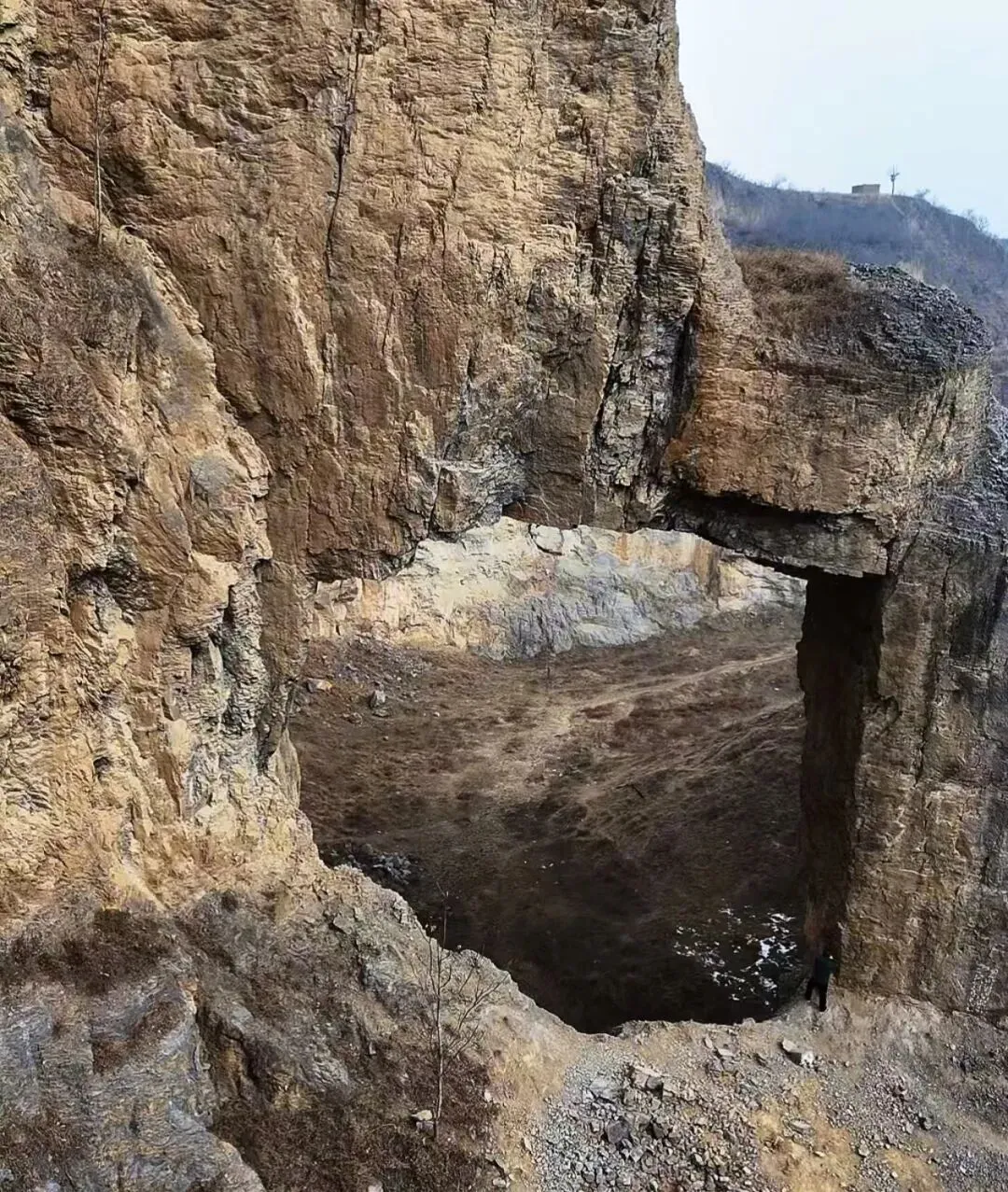 这一采石遗留的天然孔洞形如“天空之门”,被不少网友亲切地称为新密的“天门山”。