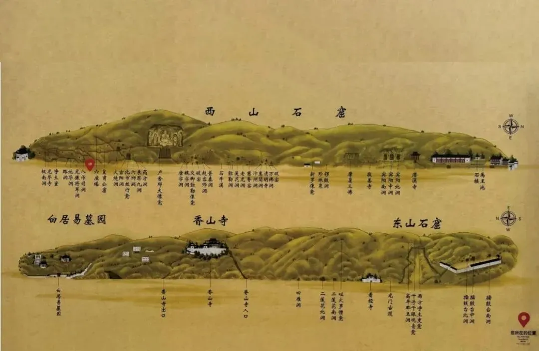 上午:西山石窟(卢舍那大佛、万佛洞)→东山石窟→香山寺。