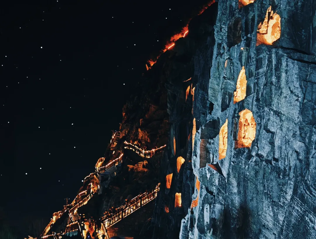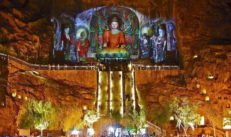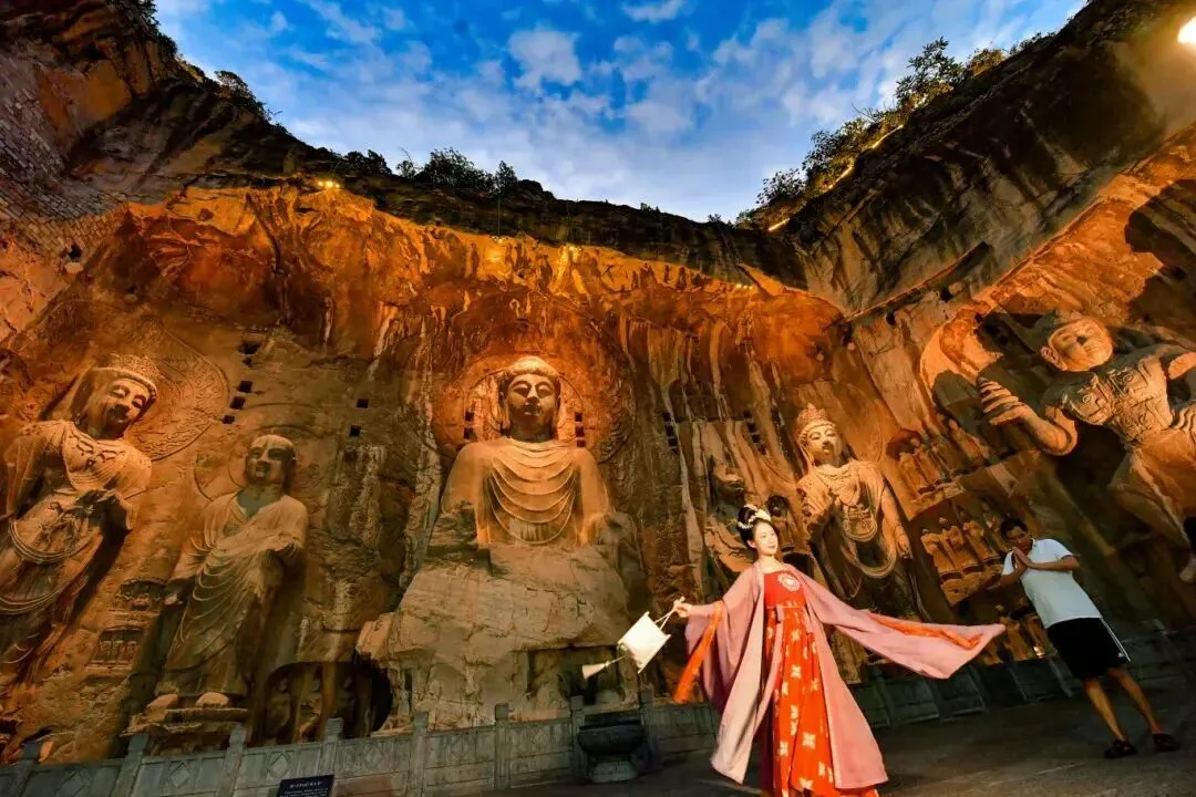 在这里,你将看到金色鲤鱼奋力跃龙门、皇家主持开窟造佛像、最美“天花板”莲花洞奇幻再现、盛世隋唐的歌舞升平……光影流转间,龙门一切似乎穿越而来,极具震撼。