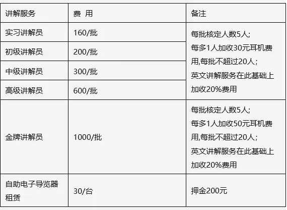 讲解中心内还提供电子语音导览机租用,费用为30元/部。