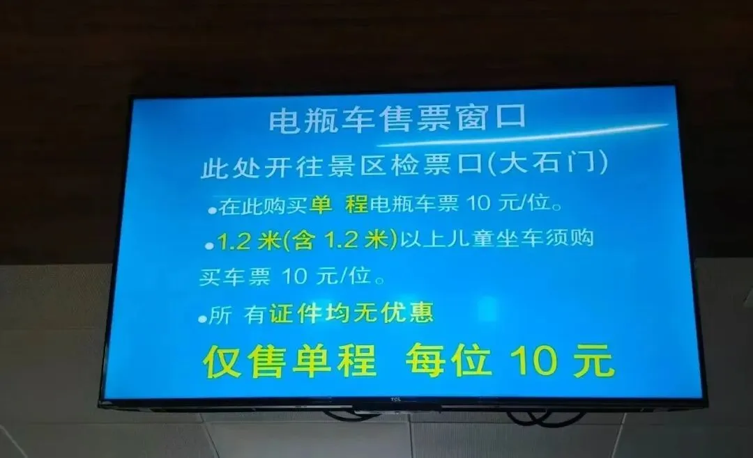 1. 电瓶车:东北服务区至石窟检票处步行约25分钟,可选电瓶车(单程10元/人)。