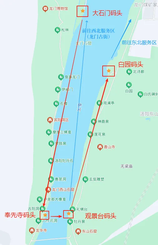 🚗自驾2:龙门石窟景区距宁洛高速伊阙站下→龙门石窟西北服务区停车场16分钟。