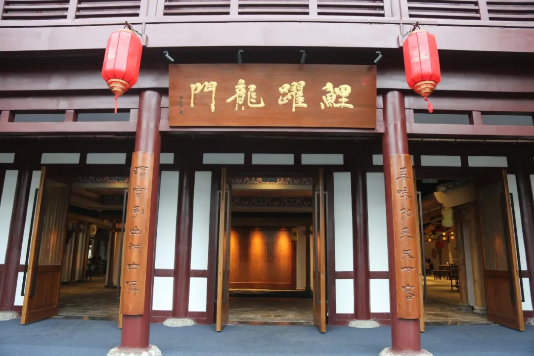 鲤跃龙门主题演艺餐厅:“鲤跃龙门”通“礼悦龙门”,既有跃龙门祈福之意,又表达广纳八方来客的礼遇。一楼规划特色小吃,二楼演艺加位餐,另设酒吧茶吧等休闲配套。