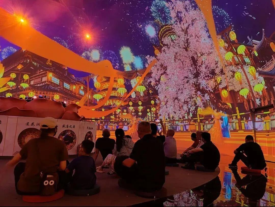 永远的盛唐沉浸式XR体验馆:为国内首个中英双语XR大空间国风题材,完美的展现了盛唐时期的繁荣景象和利用技术修复的全彩龙门石窟数字复原展现,沉浸式交互体验带你穿越古都洛阳。