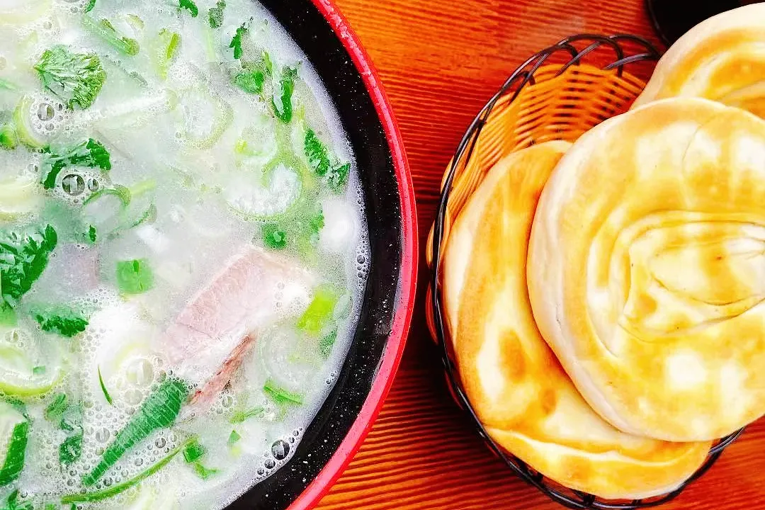 龙门三旦羊肉汤:距龙门石窟3公里,汤鲜味美,配饼丝绝佳。