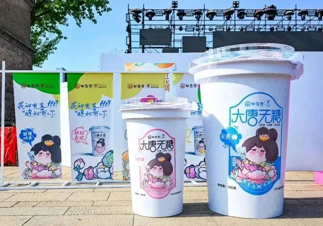 白马寺酸奶,白马寺“大唐无糖”酸牛奶,充分考虑了年轻化审美与口味偏好。包装趣味十足,充满洛阳文化特色。