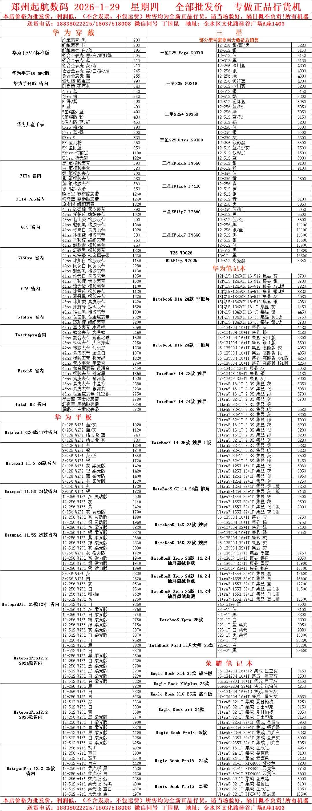 每天手机最新行情 请关注微信每日推送微信公众号:郑州起航数码公司地址:郑州市金水区文化路82号硅谷广场A座1403