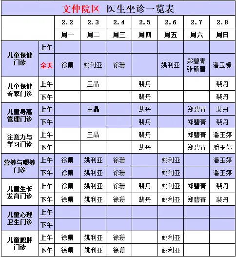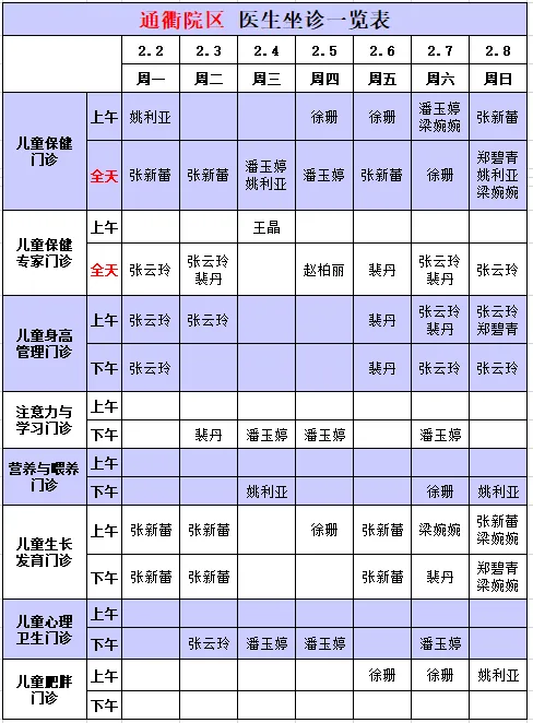 2.2-2.8 洛阳市妇幼儿保科 坐诊医生排班一览表