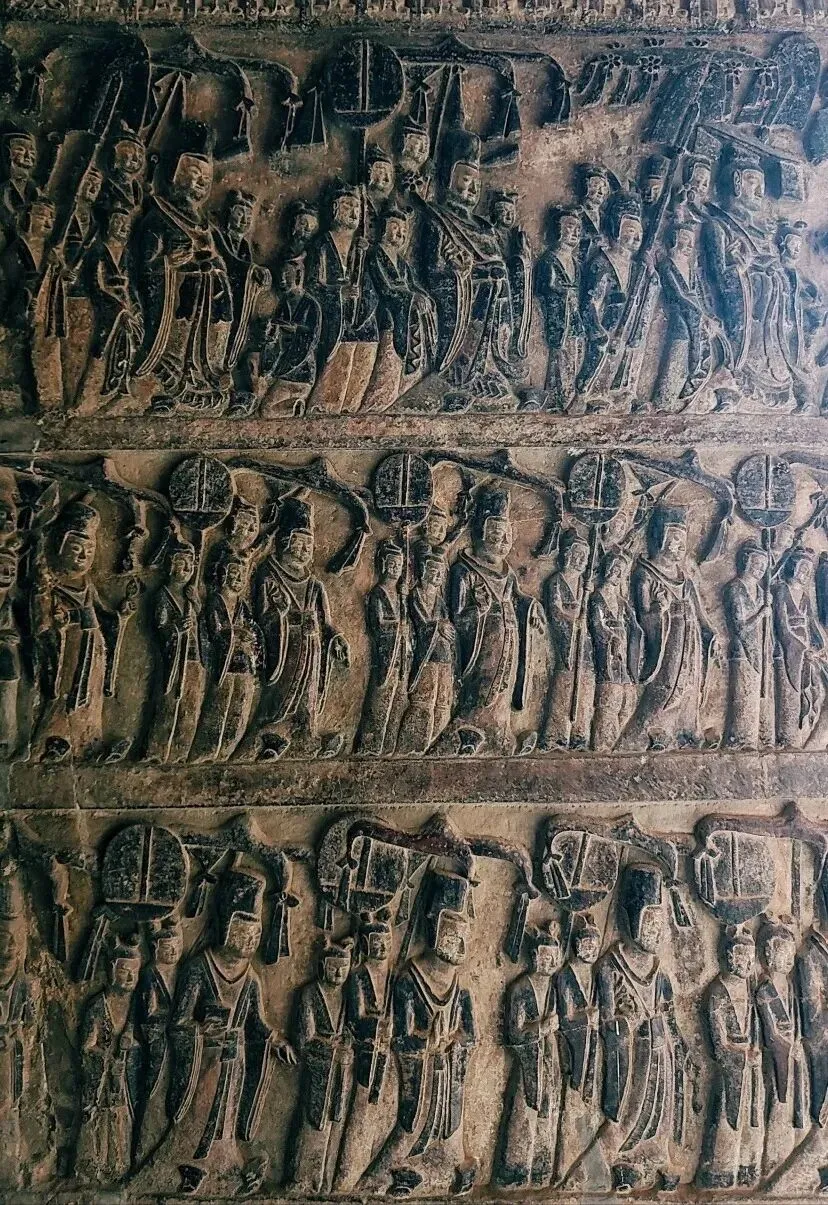 如果说宋陵是北宋的皇家史诗,那么巩义石窟寺便是北魏佛教艺术的璀璨明珠。这座始建于北魏景明年间的石窟,虽规模不及云冈、龙门,却藏着三项“国宝级”看点:被誉为“中国最美飞天”的窟顶飞天造像,身姿轻盈,衣袂飘飘,线条流畅如行云流水;而最令人惊叹的,是中国石窟中唯一幸存的孤品“帝后礼佛图”,浮雕画面中,帝后、文武百官、僧尼侍从依次排列,神情肃穆,场面宏大,真实再现了北魏皇室的礼佛场景,其艺术价值与历史价值无可估量。