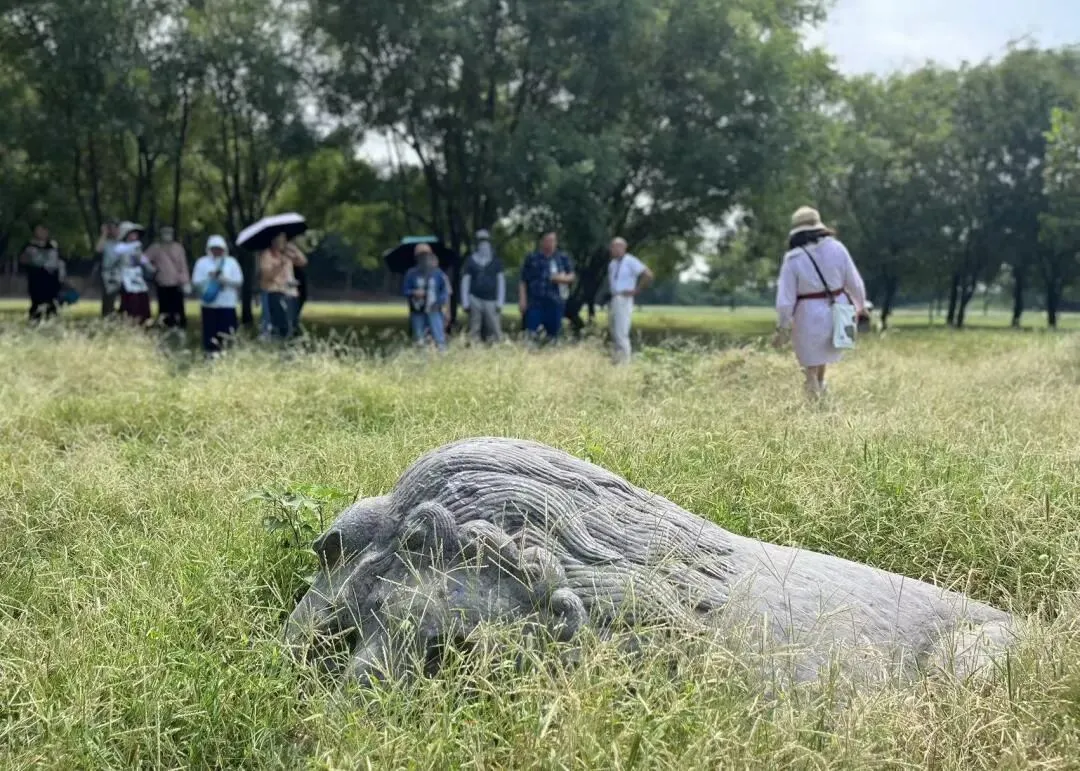 现在的永熙陵,地面上的建筑物已片瓦无存,只有宫城的围墙、神墙以及神墙拐角处的角楼遗址尚可寻见。然而值得庆幸地是,陵台前方两侧,现在还完好地保存着58件石雕像,有飞禽,有走兽,有人物,件件都称得上是古代艺术精品。