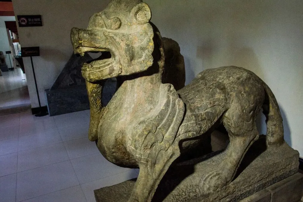 其中的石羊、石甪端造型雄浑,刀法冼炼,气韵、神态栩栩如生。