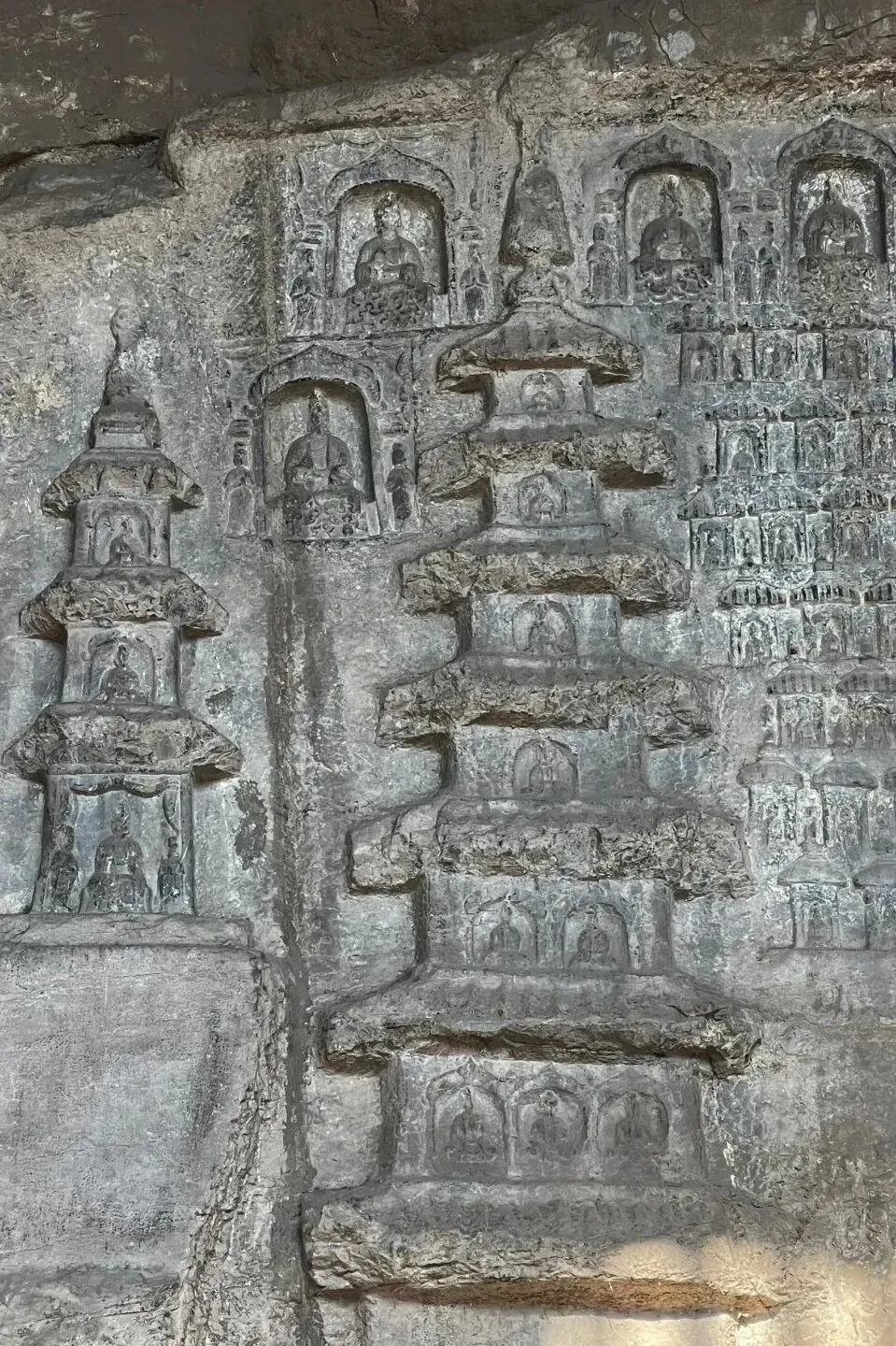 豫西的石窟传奇,不止于巩义。西沃石窟静卧黄河岸边,作为黄河中下游唯一的北魏石窟,其洞窟依山而凿,与奔腾的黄河相映,造像风格古朴典雅,虽规模不大,却尽显北魏早期造像的粗犷与灵动。鸿庆寺石窟则以国内现存最大的“降魔变”石刻图象闻名,画面中释迦牟尼降伏心魔的场景,人物神态各异,雕刻技法娴熟,是北魏中原地区石窟艺术的代表作。而水泉石窟的“二佛并立”本尊造像,在北魏石窟中极为罕见,佛像面容慈祥,造型端庄,见证了佛教艺术在豫西的本土化演变。这些小众石窟虽不及三大石窟声名显赫,却更显静谧与纯粹,让你能在无人打扰的氛围中,细细品味石刻艺术的匠心与禅意。