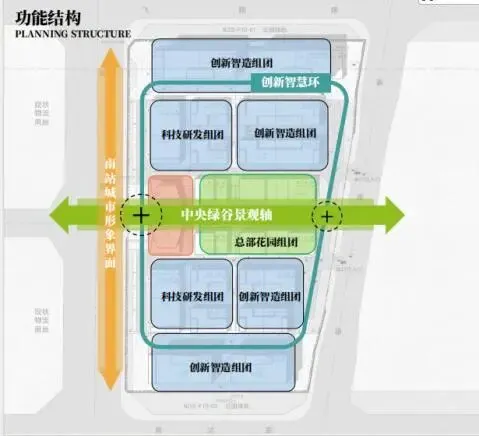 建中智能创新产业园位于郑州市管城区豫十路以北、东三环以西,紧邻郑州南站综合交通枢纽,周边路网四通八达,为区域资源要素流动提供便利。项目总用地面积 80742 平方米,分东西两期建设,用地性质为一类工业用地,容积率、建筑密度、绿地率均按标准科学管控,打造集约高效的产业发展空间。在空间布局上,园区规划 “研发 + 生产 + 服务 + 配套” 全链条体系,布局生物医药/研发设计、新一代信息技术、智能制造/新材料、检验检测四大功能板块。根据各板块发展需求,匹配高层厂房、多层楼宇等差异化建筑形态,打造功能复合、职住平衡的现代化产业社区。园区以“一轴一环多组团”进行系统设计,中央绿谷景观轴打造开放生态的公共空间,创新智慧环通过人车分流提升内部通行效率,多组团科学划分功能区域,布局四大主导产业,形成层次清晰、有机联动的发展格局。同时,园区践行绿色发展理念,在景观设计中融入本土中药植被元素,规划屋顶花园、共享休憩平台等设施,优化人行动线与慢行系统,串联生产、生活、生态空间,打造宜业宜居的花园式产业社区,为郑州市管城区产业升级、企业发展、人才集聚提供优质环境。