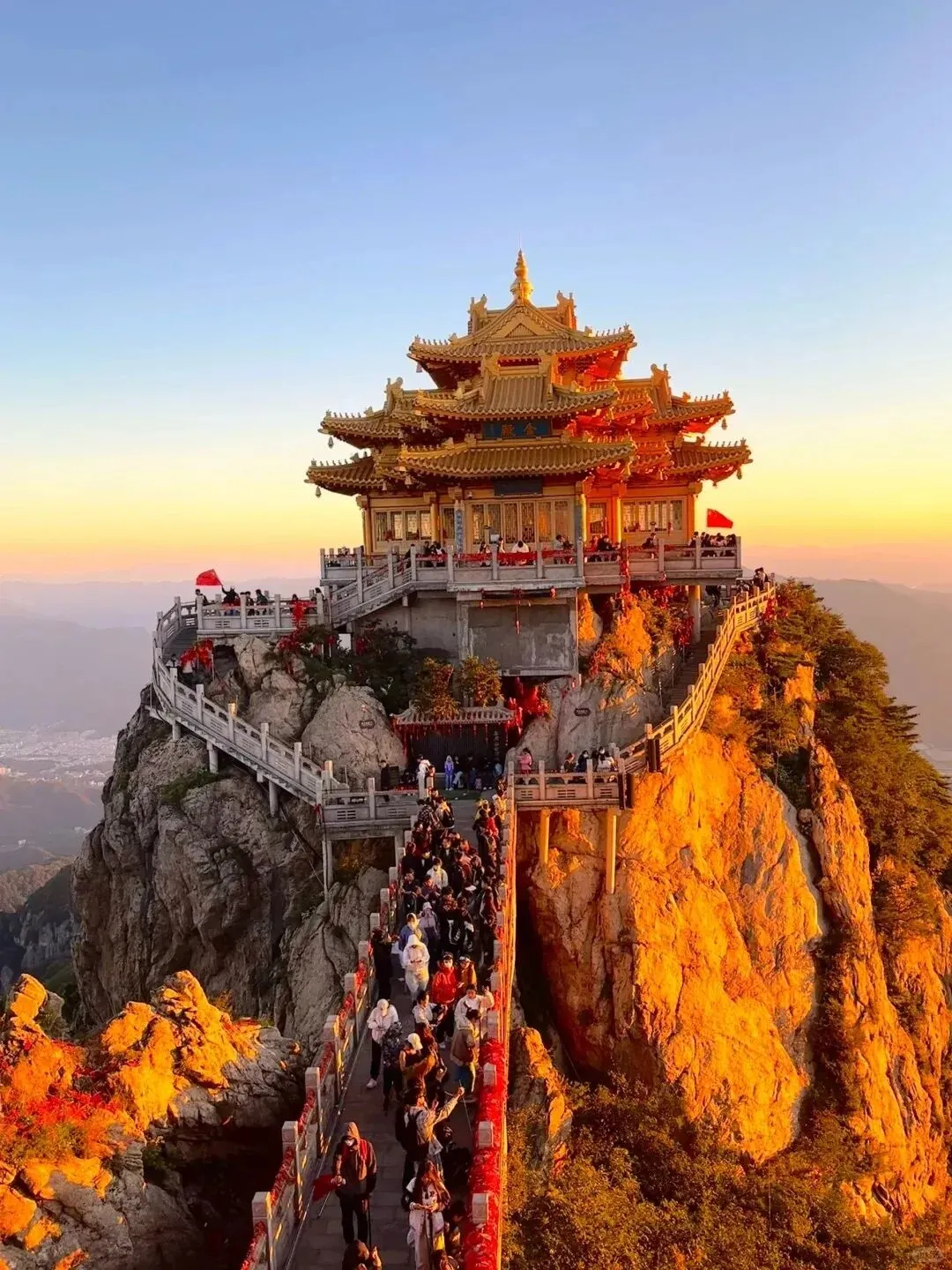 今日奔赴老君山。缆车穿云而上,十里画屏栈道悬挂绝壁,奇峰怪石宛如水墨长卷。登临金顶,道观群鎏金铜瓦在云海中熠熠生辉。玻璃观景台上凭栏远眺,群山如浪,云雾似海,恍若仙境。下山途经老子文化苑,圣哲铜像默然伫立,道法自然之意沁入心田。