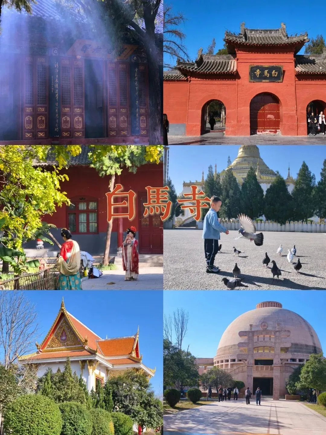 龙门石窟的清晨静谧庄严。卢舍那大佛慈悲垂目,千年微笑依然动人。伊水潺潺,洞窟层层,北魏至盛唐的斧凿痕迹刻满崖壁。午后转入白马寺,古柏森森,钟声悠悠。中印缅泰风格佛殿比邻而立,见证佛教东传与文明交融。