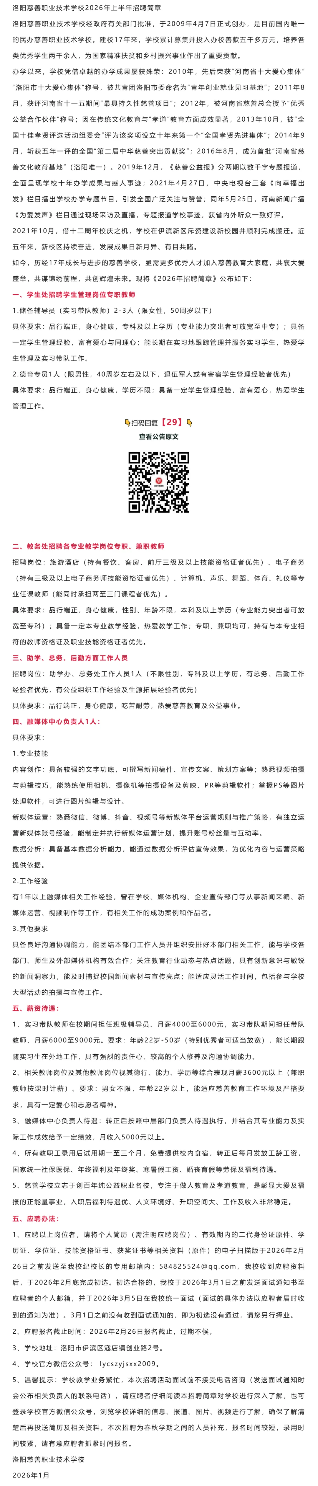 >专科起!2026洛阳慈善职业技术学校招聘公告