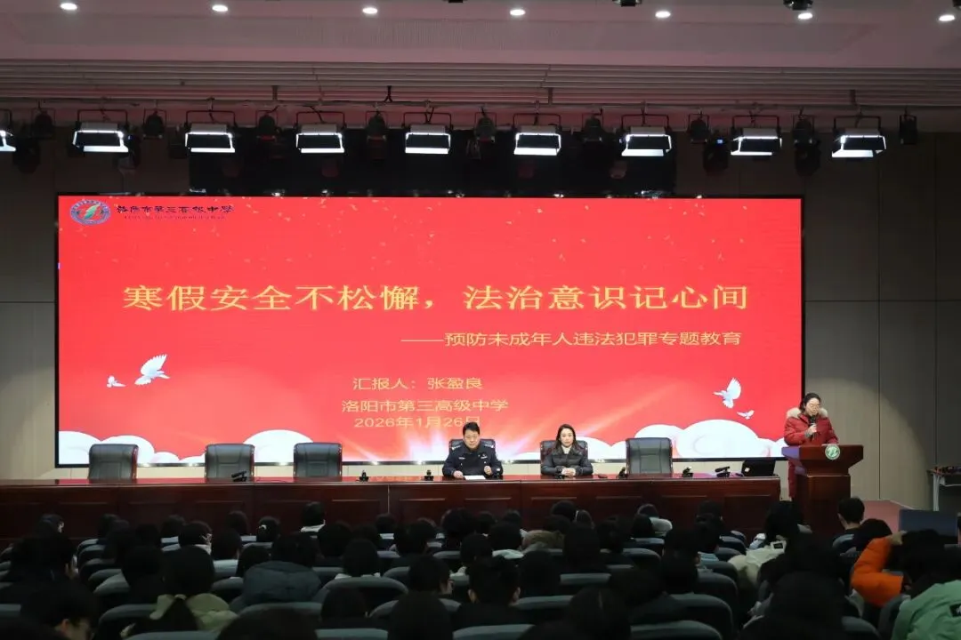 此次专题教育活动不仅为洛阳市第三高级中学的学生们送上了一份及时的“寒假安全法治大礼包”,也进一步强化了学校的法治教育体系建设,是深化平安校园建设、协同社会治理的生动实践,为构建阳光、安全的校园环境奠定了更加坚实的基础。