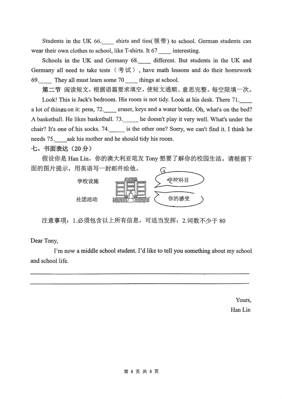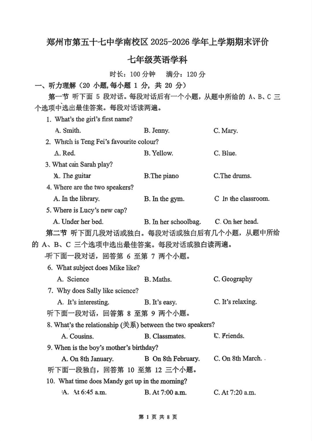 郑州市第57中学南校区2025-2026上学期期末七年级英语
