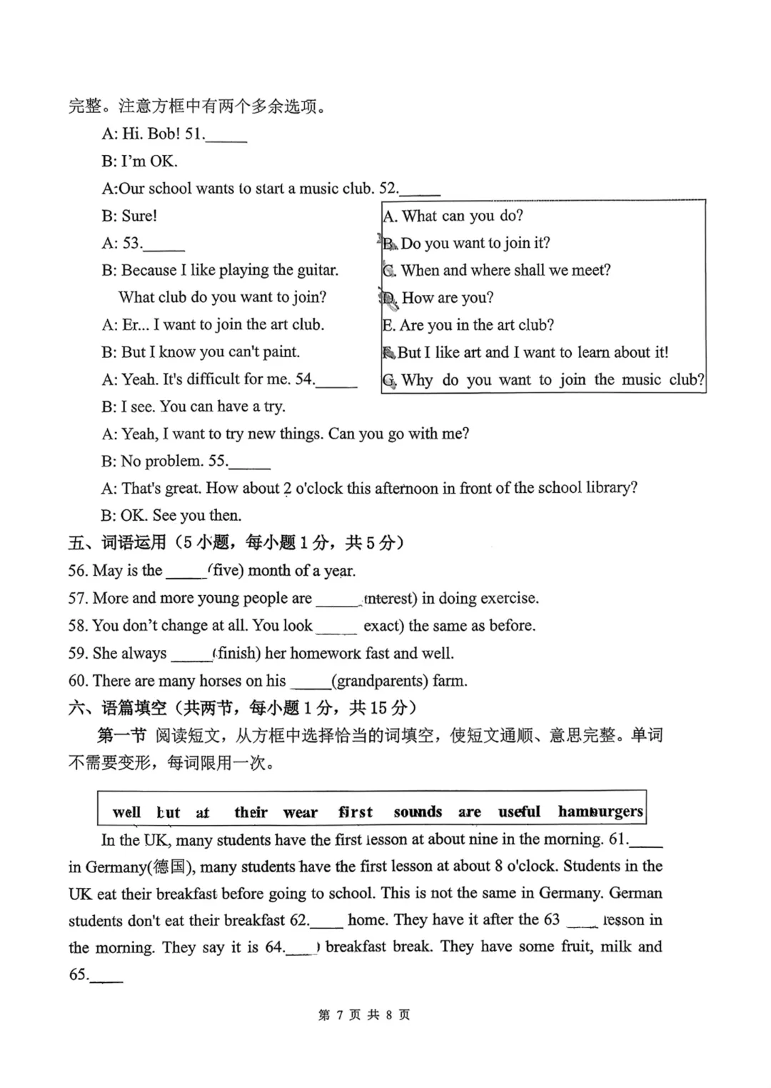 >郑州市第57中学南校区2025-2026上学期期末七年级英语