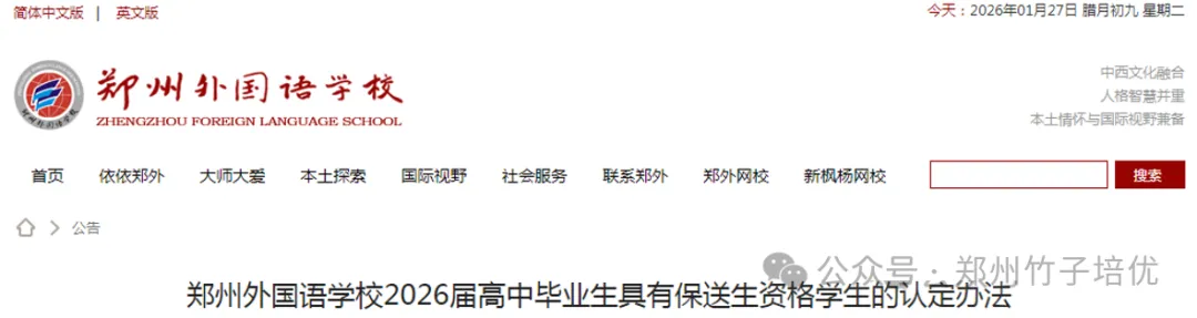 根据教育部《关于做好2026年部分外国语中学推荐保送生工作的通知》的规定,特制定《郑州外国语学校2026届高中毕业生具有保送生资格学生的认定办法》,确定具有保送生资格的学生名单。