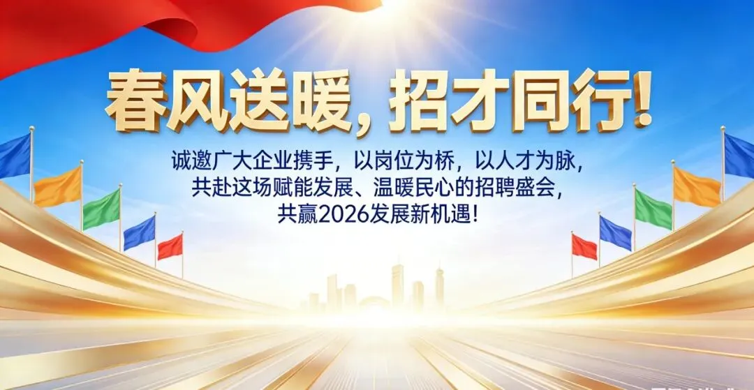 春风送暖,招才同行!诚邀广大企业携手,以岗位为桥,以人才为脉,共赴这场赋能发展、温暖民心的招聘盛会,共赢2026发展新机遇!