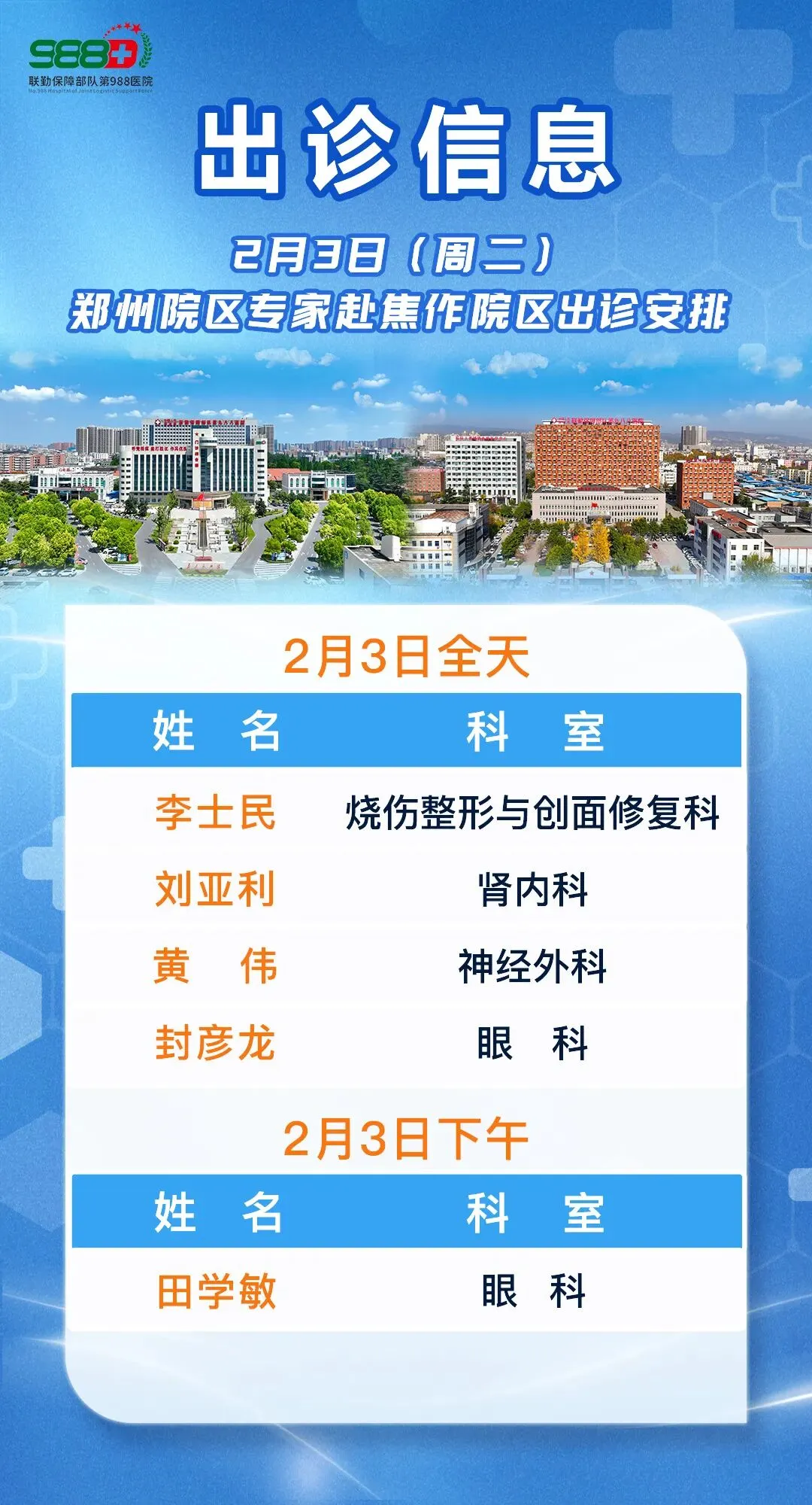 【988·医有讯】深融合 促发展丨郑州院区专家赴焦作院区出诊信息